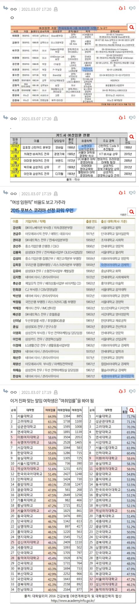 백날 이미지가 어쩌고 저쩌고 해도 숙대 출신 중 유리 천장