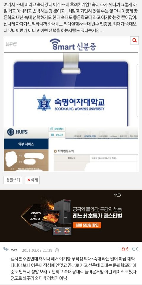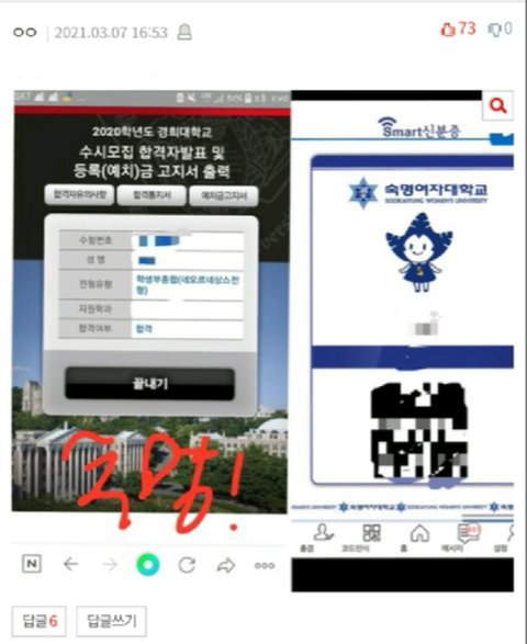 (참고) 인증사진이 올라오기 전까진 모든 베플과 80%의 댓글이 숙명여대를 까고 있었음.