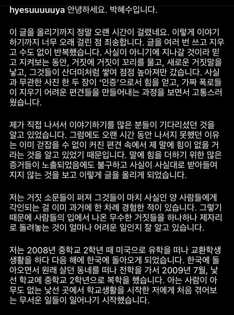 박혜수 인스타 해명글