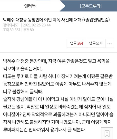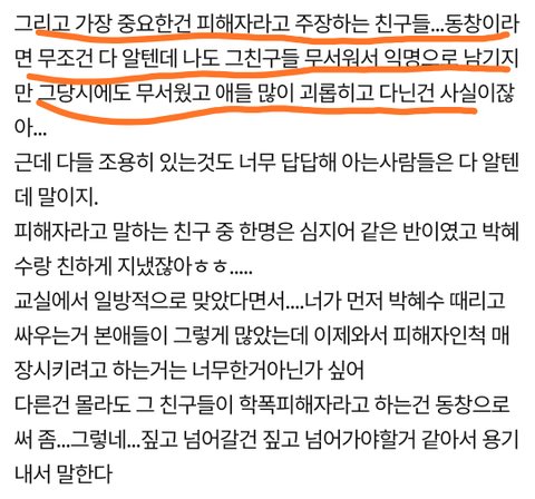 박혜수 인스타글이랑 약간 아구가 맞는 증언