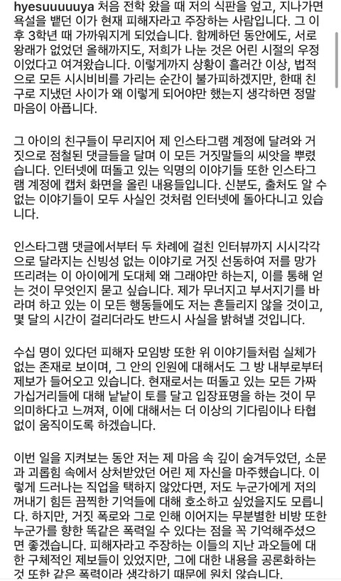 최초 학폭이 피해자코스프레 한거래 근데 얘 폭로글 한두개 아니잖아 대학생때도 있고