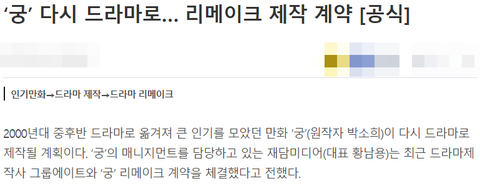 최근에 드라마 <궁> 리메이크한다고 기사 났었잖아