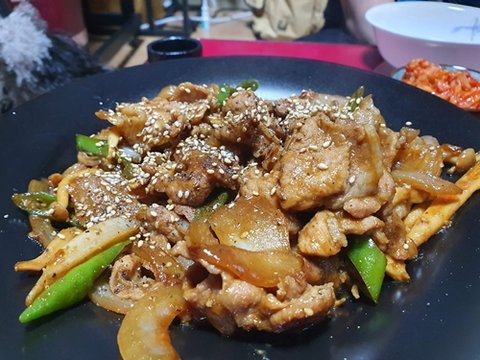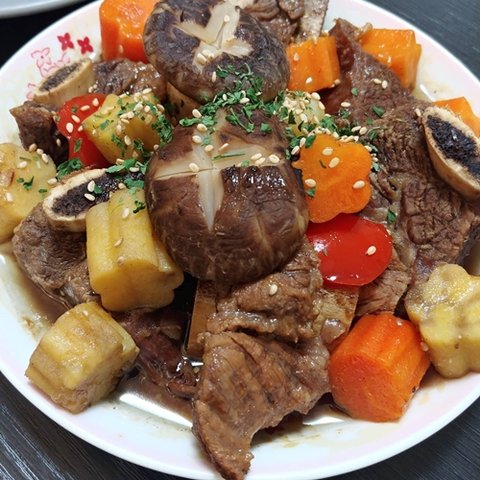 TV에서 고기요리할때 사과, 배 갈아넣는거 보고 남는게 있길래 넣어봤는데... 왜 넣는지 알것같네요, 엄청 맛있습니다. 자연스런 단맛도 좋고 고기도 연애... 아니 연해지고...