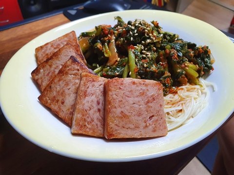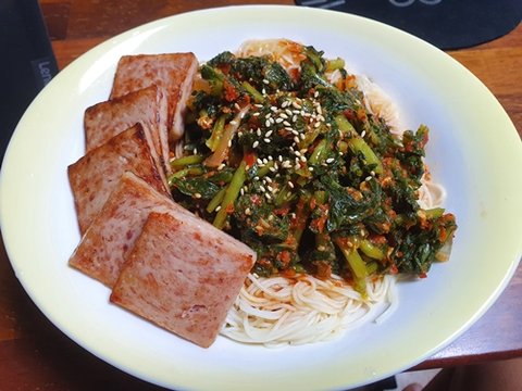 잘익은 열무김치에 소면을 말아먹는걸 좋아하는데, 스팸까지 올리면 환상적입니다. 물론 사진에 찍히지 않은 스팸이 더 많습니다. 소면도....