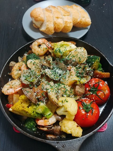 처음에 감바스할때는 올리브유와 마늘, 새우가 전부였는데 하면할수록 첨가되는게 많아지더니... 이제는 감바스라고 하기엔 너무 잡탕이 되어버려서... 잡바스라 하겠습니다ㅋㅋ