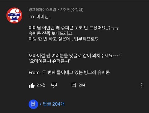는 바로 슈퍼콘 광고 ㅋㅋㅋㅋㅋ 밈피디가 쏘아 올린 공 ㅋㅋㅋㅋ 밑에 사진은 밈피디에게 들이대는 빙그레...^^ 참고로 유아도 체리마루 광고모델 됨^^ ㅊㅊ