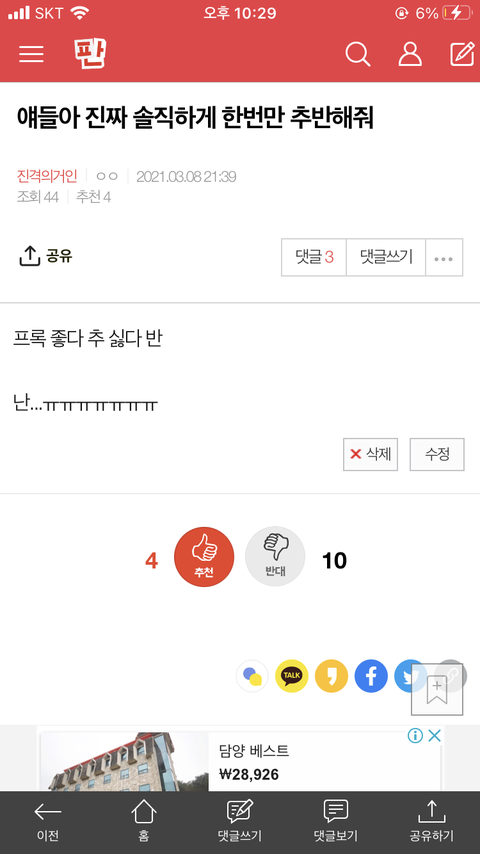 본방 보기 전에는 4대2인가 그랬는데...솔직히 내가 생각해도 프록 욕먹을짓 많이 했다고 생각하긴 한데ㅠㅠㅠ