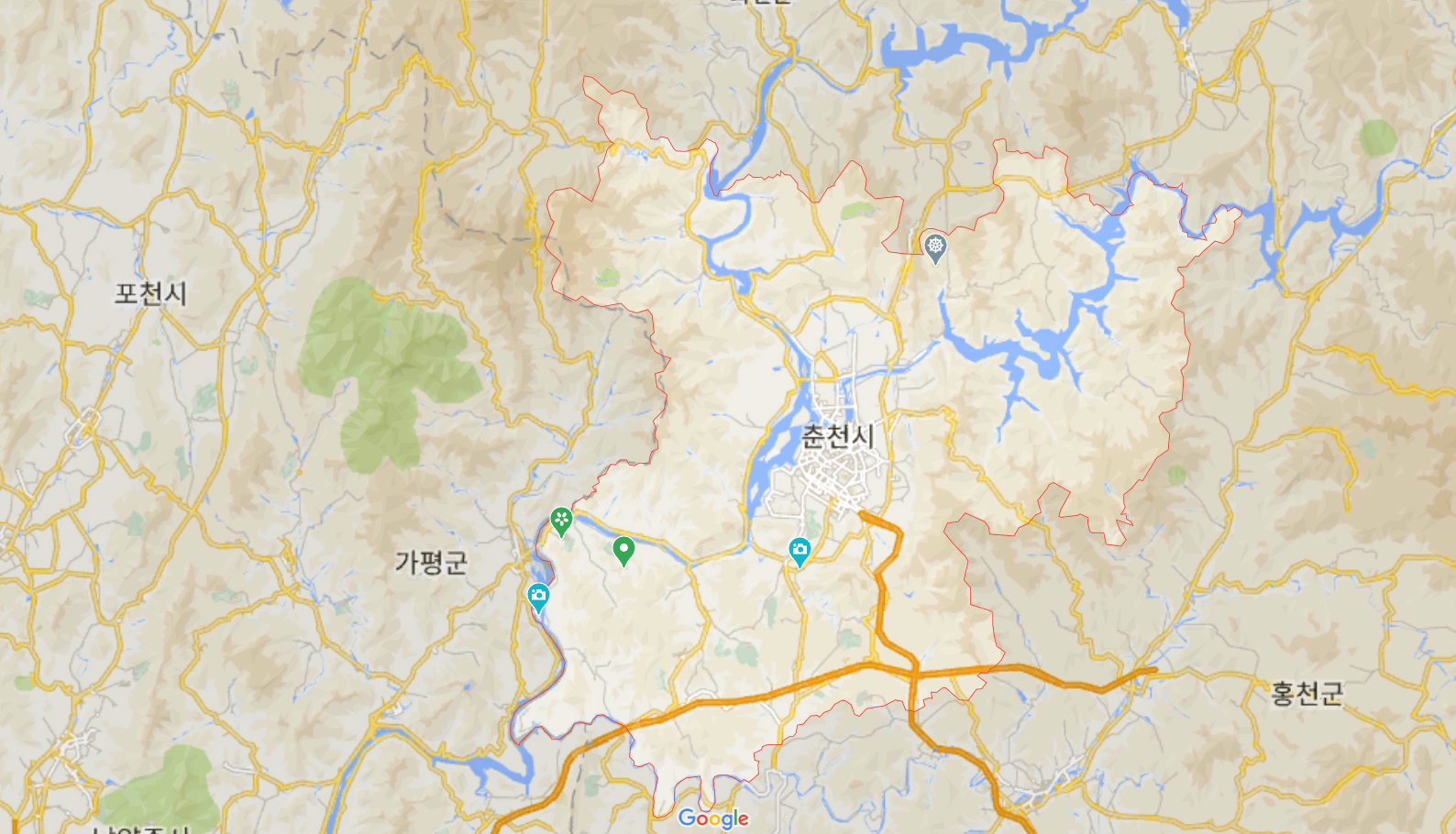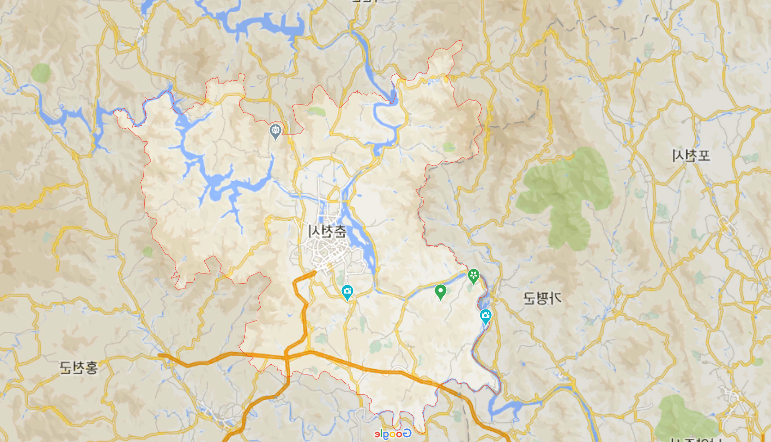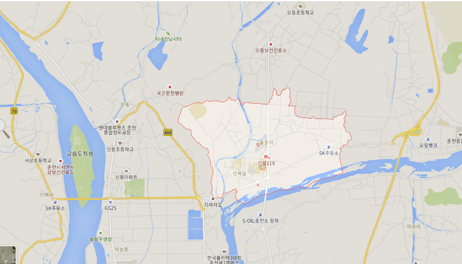 춘천 신북읍이 고추가 처진듯 그렇게 생긴 땅이다 젓꼭지 같음 애가 그렇게 입속에 넣고 빠는 모습 길(吉)자형(字形)이고 귀두(龜頭) 남물(男物)로 본다면 여성 옥문에 들쑥날쑥 하는 모습이고... 강하(江河)가 젓이 흘르고 꿀이 흐르는 모습이다 이렇게 말해도 되고...