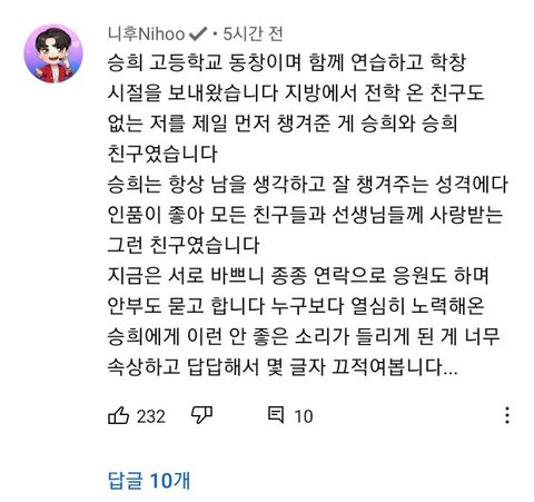 승희 고등학교 동창분 글 떴음
