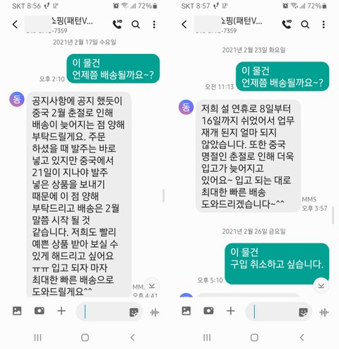 2021.02.17. 배송이 언제쯤 될지 질문 -> 중국 춘절로 인해 배송지연. 친절히 2월말쯤 시작될 것이라고 안내