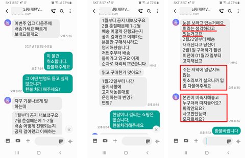 2021.03.03. 다시 구입 취소 의사 밝힘 -> 막말시전