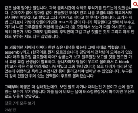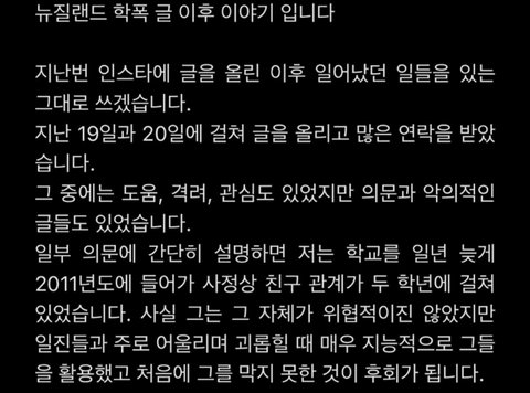 +계속 몇몇이 일진무리에 있어서 만만한데 못건드렸다하는데 그럼 뉴질랜드 유학온지 1년도 안된애가 일진 우두머리였다는거자나 덩치도 작고 힘도 못쓰는데 이쪽으로 우기는건 좀 아니자나