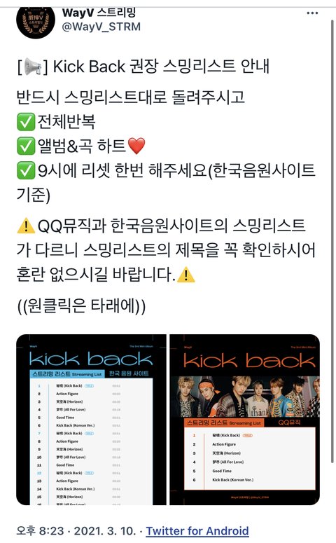 웨이션 스밍리스트!! 한국음원 기준임