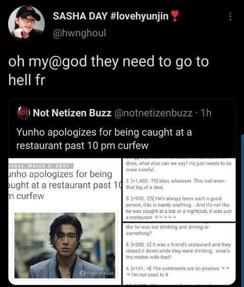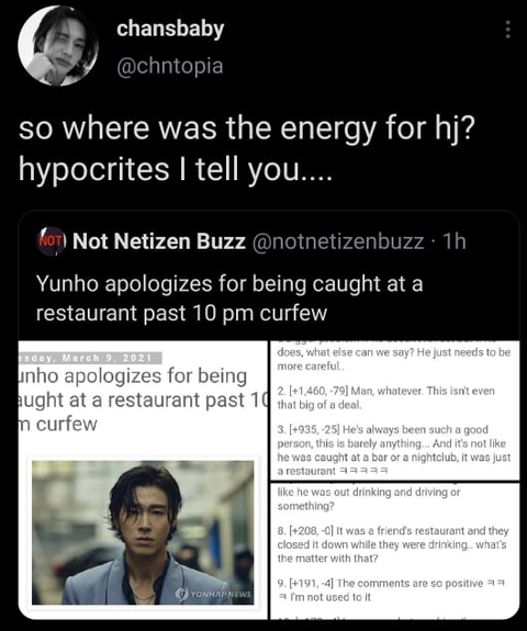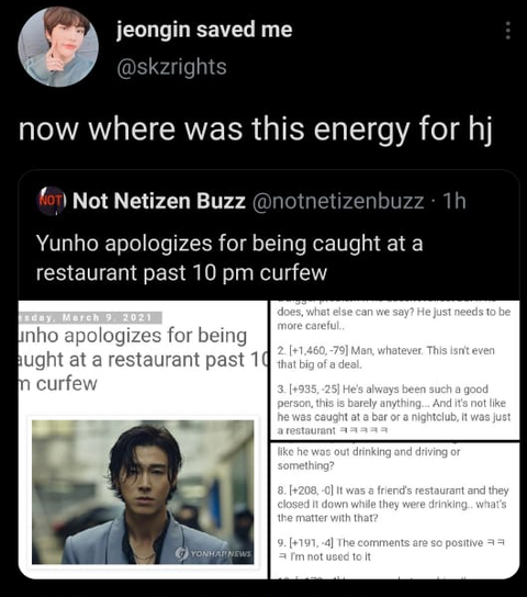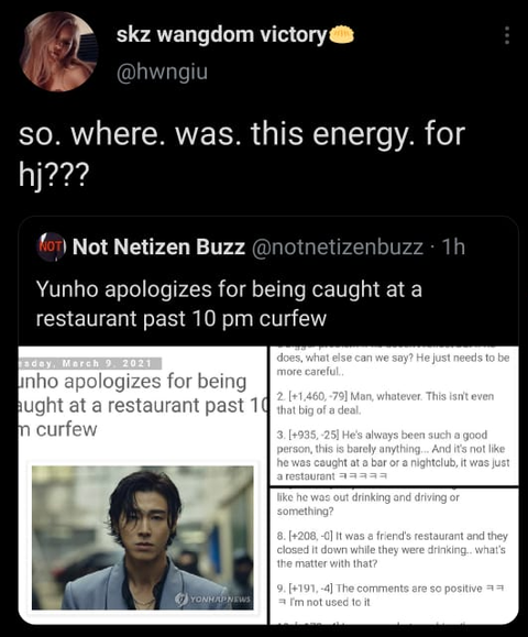 ㄷㅂㅅㄱ ㅇㅎ님의 최근 사건 대한 네티즌의 반응이 괜찮다고 스키즈 외테이들이 화냈다는걸 나만 너무 어이없다고 생각해? 어떻게 이 상황을 현진의 학폭이랑 비교할 생각도 있는지 진짜 눈치 개없네. 한테이들 제발 외테이들 쫌 말리라고.