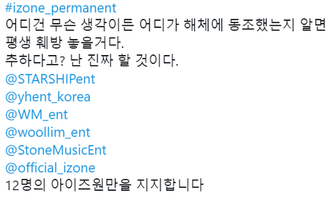 근데 아이즈원 해체는 당연한거아님...?지금 팬들이 아이즈원 해체 못시킨다고 해체 동조한 소속사 훼방놓을거다 이러구 막 해체 반대 입장문 올리는거 보고 좀 띠용함코로롱때매 콘서트 온라인으루 하고 해체하는거 보는 팬들 마음은 이해가지만...연장이랑 해체반대 요구하는거 보면 좀 왜저러지싶음다른그룹들은 다 해체하고 연장한 팀이 하나도 없었는데 조작 터진이후에도 그러는거보면 좀...