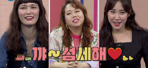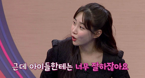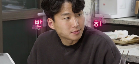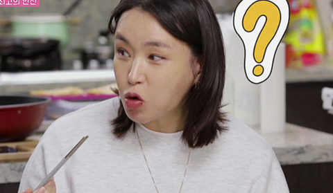 배윤정이 밥을 먹다가 입에 붙은 거 떼주는