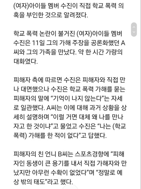수진 피해자 만났는데 학폭 부인함