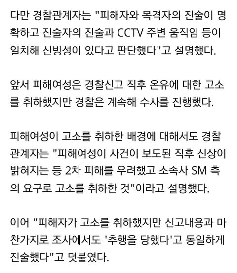 온유가 진짜 기억이 안나서 sm쪽에서 cctv영상 구함. 그리고 여자가 고소 취소. 근데 경찰쪽에서 계속 조사했는데 무혐의 나온거임. 이진기 그만좀 괴롭혀
