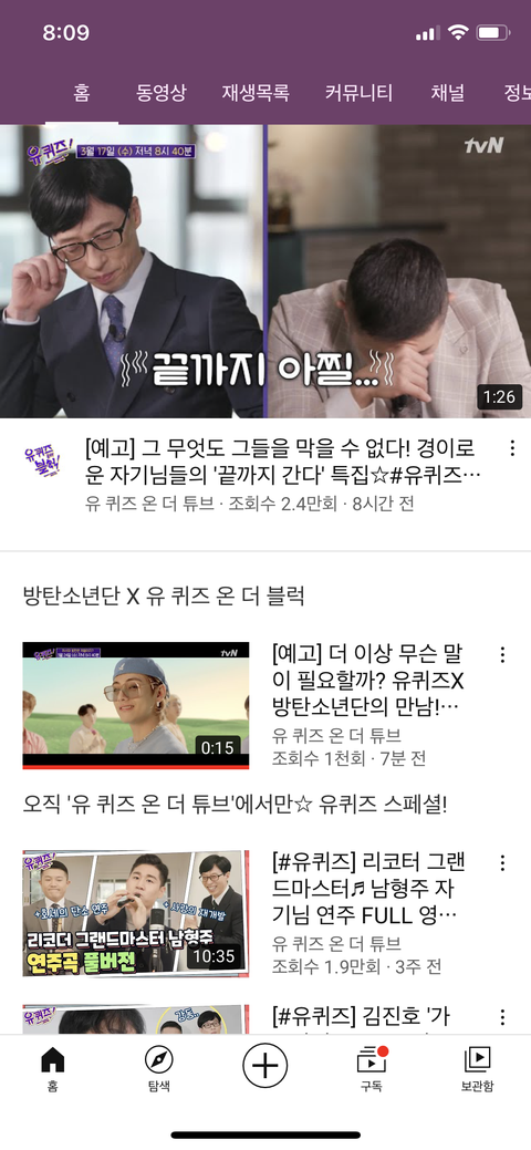 유퀴즈 유튜브에 방탄 카테고리 생김 ㅋㅋㅋ