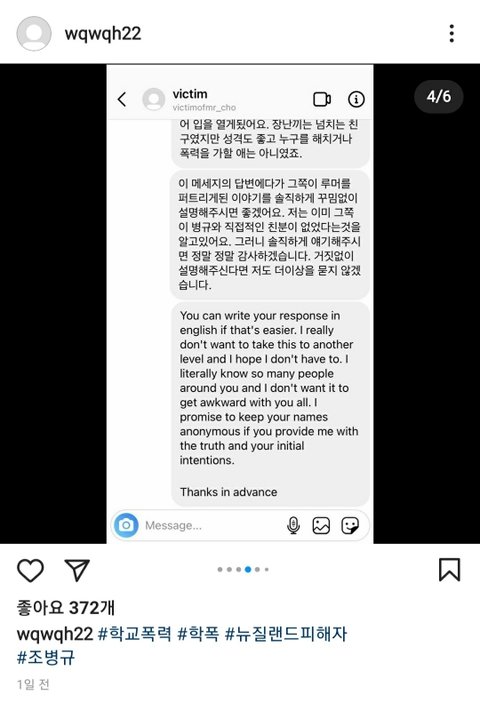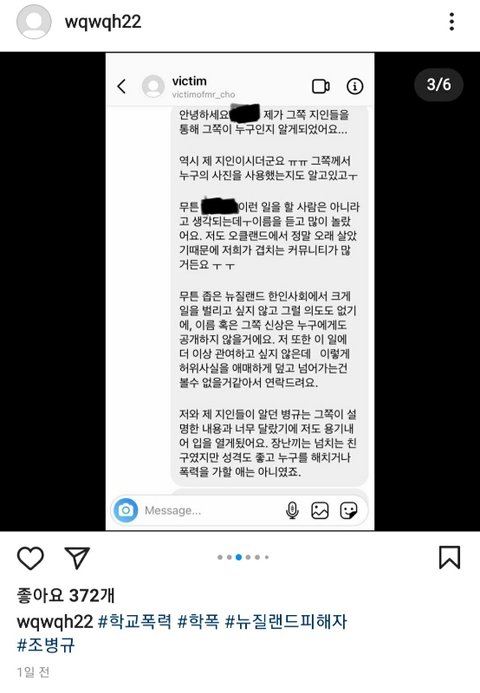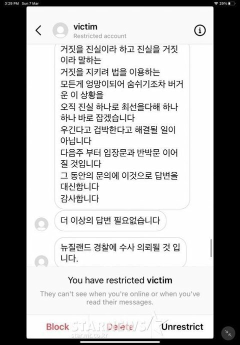 지금 피해자가 w를 상대로 싸우겠다는 게 아니라, 공개 검증할 때 w도 참석해달라는 말이잖아. w는 여고 다닌 여학생이고 학폭은 남고에서 벌어졌는데, w가 ㅈㅂㄱ는 학폭할 사람이 아니라고 주장했으니 같이 만나서 공개 검증하자는 거지. 그리고 w가 피해자 여친한테 접촉한 증거가 남아있을 테니 이게 처벌 받을 일인지 아닌지는 뉴질랜드 법원이 판단할 일이고.