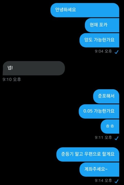 준포 해서 500원 되냐고 물어봤죠.. 준등기 값만 1500원인데 전 웃겨서 방에서 쳐웃고있는데 언니가 문 열고 오더니 어떤 사람이 준포해서 500원에 사가겠다는데 이게 내가 잘못 본거냐고 해서 전 그와중에 웃참 못해서 일부러 재밌는거 읽으면서 웃음 터진척 연기..