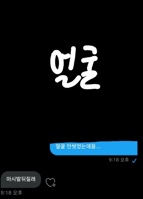 누워있는 얼굴 사진 보내주면서 얼굴 안씻었다고 했더니 욕 보냄..이때 진짜 무서웠어요 쿵쾅 거리는 발소리가 들리더니 제 방문 열고 너였냐고 둘 다 엄청 웃었어요