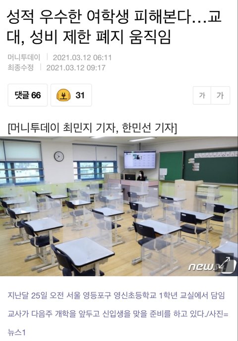 얘들아 교대 남성할당제 없앤대ㅋㅋ