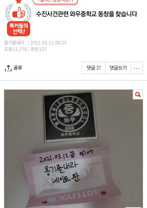 수진사건 와우중 동창 학폭피해자 찾는다는 글이 오늘