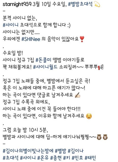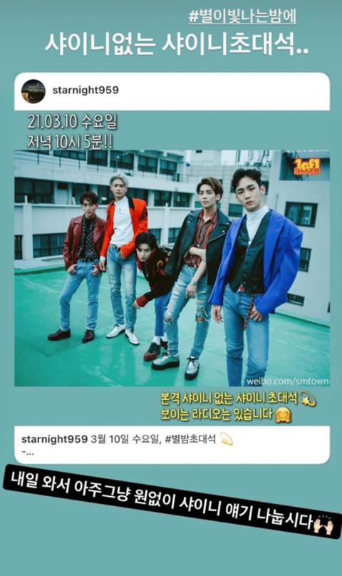 샤월들이 멤버들한테 샤이니 없는 라디오 한다고 말해줘서 알게된