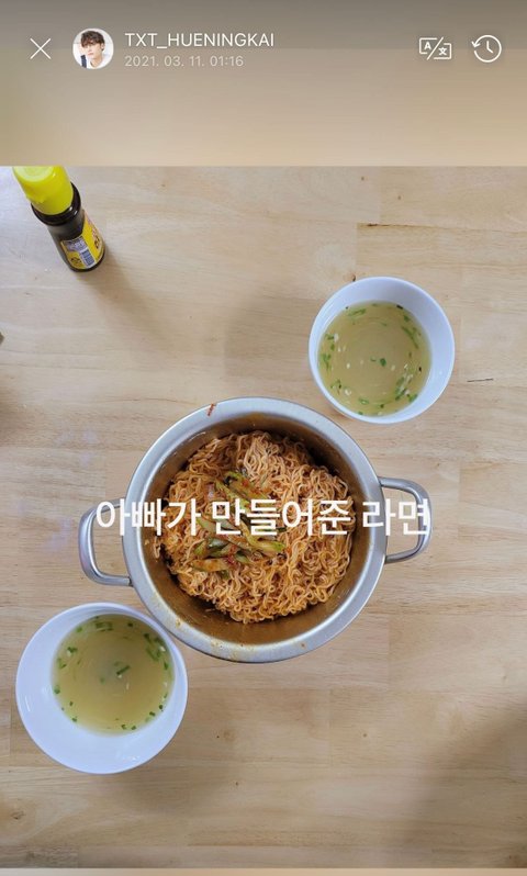 실시간으로 비빔면 먹고있는거 올려준 투바투 막내들