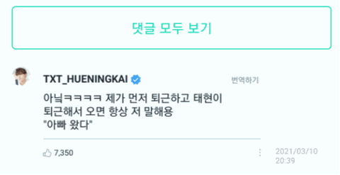 : 퇴근하고 오면 태현이가 "아빠왔다~" 함ㅋㅋㅋㅋㅋ