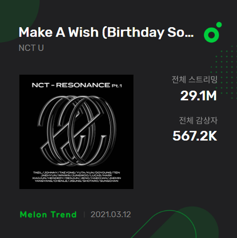 세븐틴, NCT 가장 최근 곡 멜론 이용자수 비교