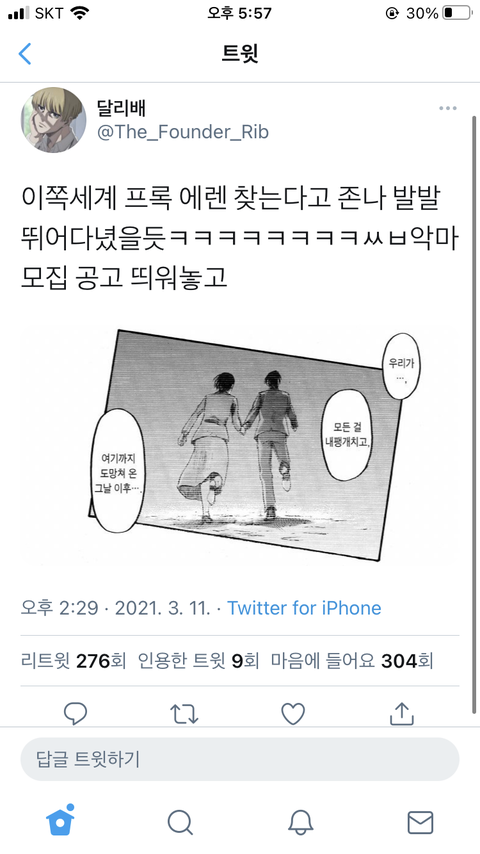 우리 프록 폴스타님...에렌 한정 집착남이야 사랑해 움 쬭