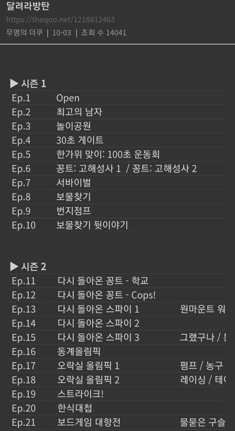 제목이랑 회차 같이 있어서 즐겨찾기 해놓고 다시보기할때 편한데 팬톡에 질문글들 종종 보여서 필요한 이삐들 있을까봐 올려봤어