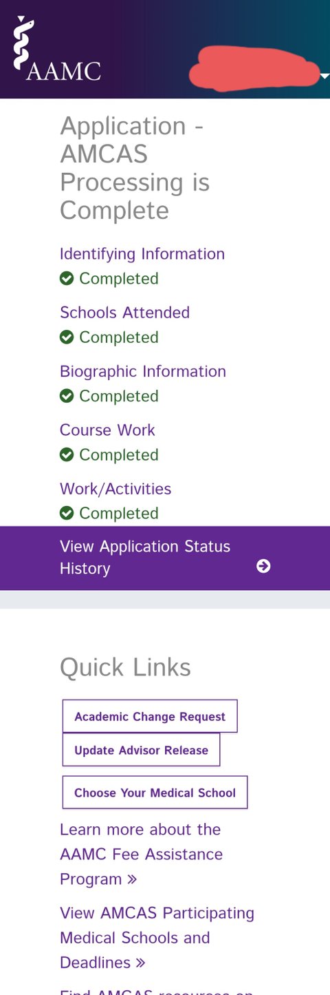 이건 원서 회사? 프로그램? 스샷임 저 밑에 "Choose Your Medical School"은 합격한 학교가 1군데라도 있어야 뜨는 버튼임