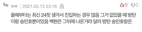 댓글에서 이거 봄 방탄은 대단한거 이미 알고 송민호가 진짜 대박이네.. 최신24 없을때 컴백한거야?
