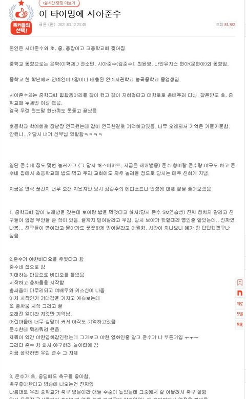 혹시 톡선에 준수동창글 못본 애들 있을까봐 캡쳐해왔어