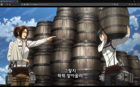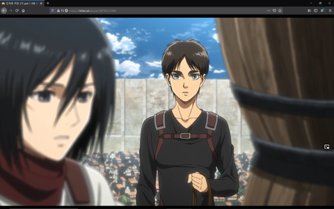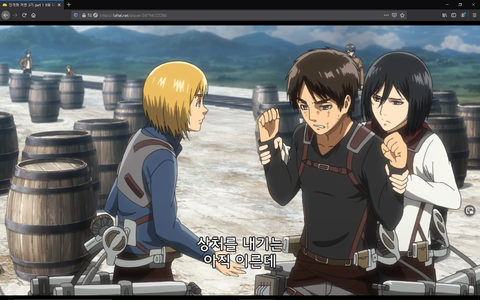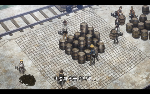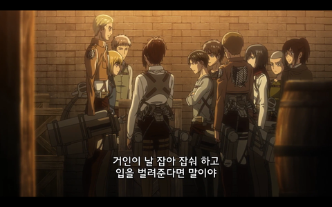 미카사가 말리는 장면인데 아르민이 때리는거같음)