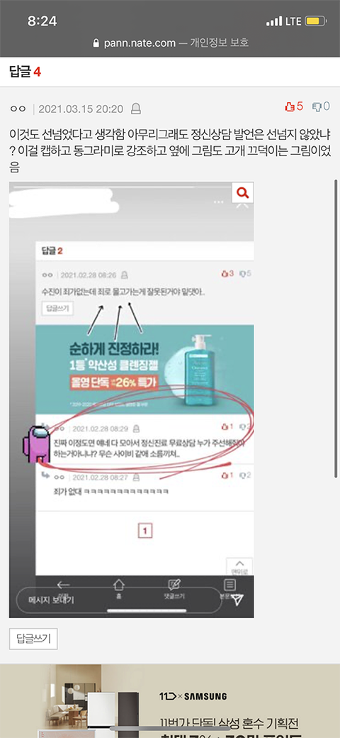 네이트판에 해명문 작성하는 건 난 여론몰이만 당하니까 쓰지 않겠다.