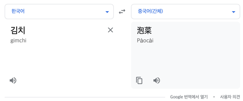 그리고 김치는 예전부터 파오차이로 불렸었어 요즘같이 중국이 문화침공? 암튼 그런거를 안해서 관심이 없었겠지만 말이야. 참고로 구글 번역기에도 파오차이로 나와. 그러니까 일본이 맥도날드를 매크도나루도 라고 읽는다고 맥도날드를 일본 브랜드로 우긴다는 거랑 똑같은 거야.