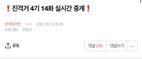실시간 중계 댓글 400개 넘어ㅋㅋㅋㅋㅋ