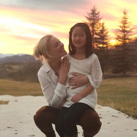 캐서린 헤이글은 2009년에 9개월 된 한국 아기를 입양했는데