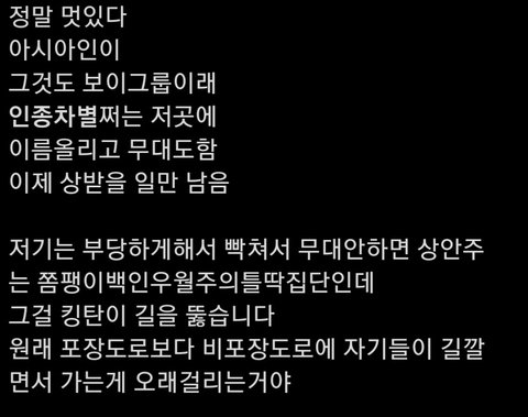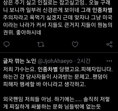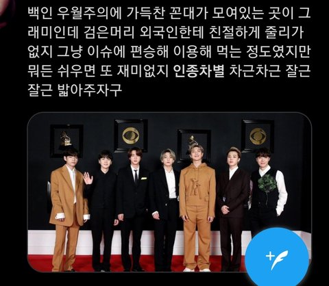 방탄 상못받은거 인종차별로 몰아가는거 추함