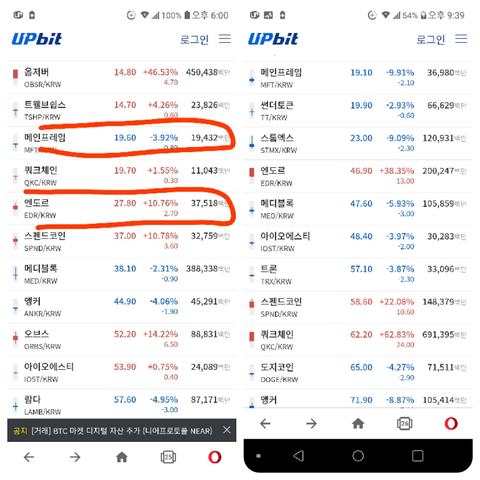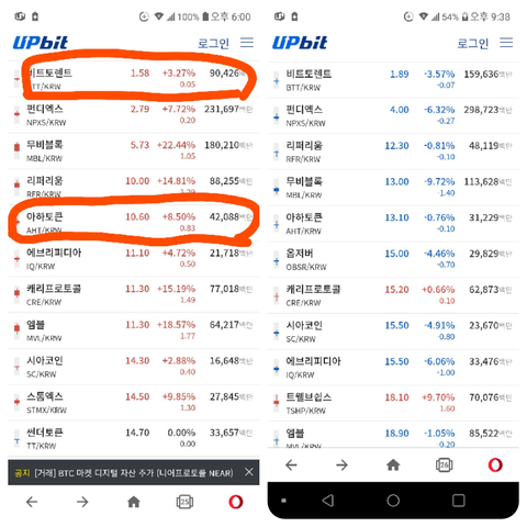 3.10일과 3.15일의 코인비교