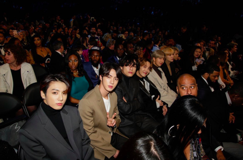 제목에 적은 그대로,  2020년 그래미 시상식때 우연히 방탄소년단 앞에 앉게 됐어...