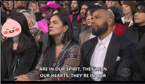 이 날 Kobe 의 갑작스러운 사고와 죽음으로 인해 다른 그래미때 보다는 분위기가 많이 차분했기 때문에 애들도 너무 들뜬 모습 보이지 않기 위해 엄청 떠들거나 하지 않고 조심하지 않았나 싶어. (물론 이건 내 생각이지만!!!)