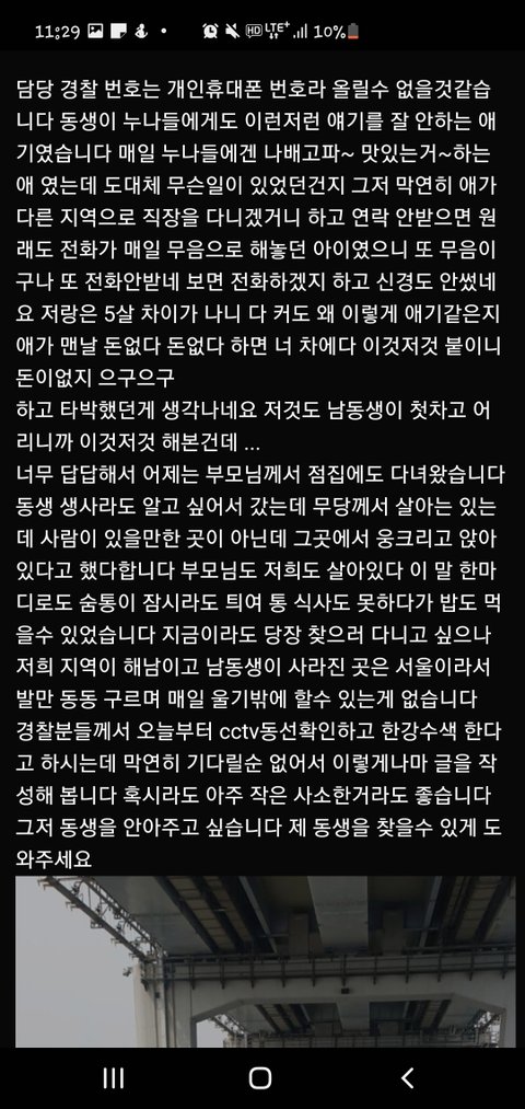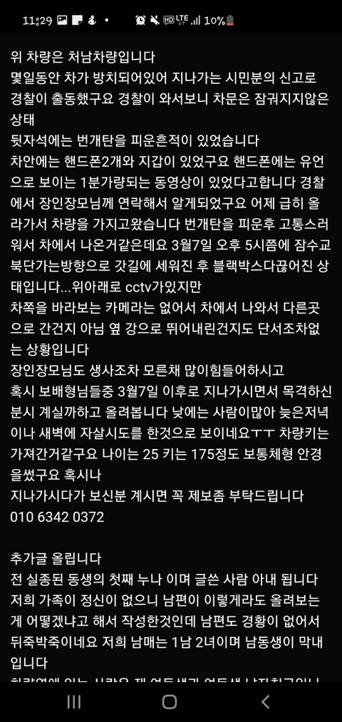 제 동생입니다 사소한 것이라도 좋습니다 혹시나 보신게 있으시다면 010 5342 0372 제 연락처입니다 연락바랍니다., ,