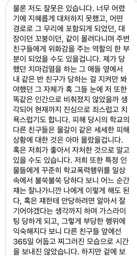 사실 지금 생각해보면 이친구에게 사과할 일은 아니었는데 그당시엔 보복이 두려웠습니다.