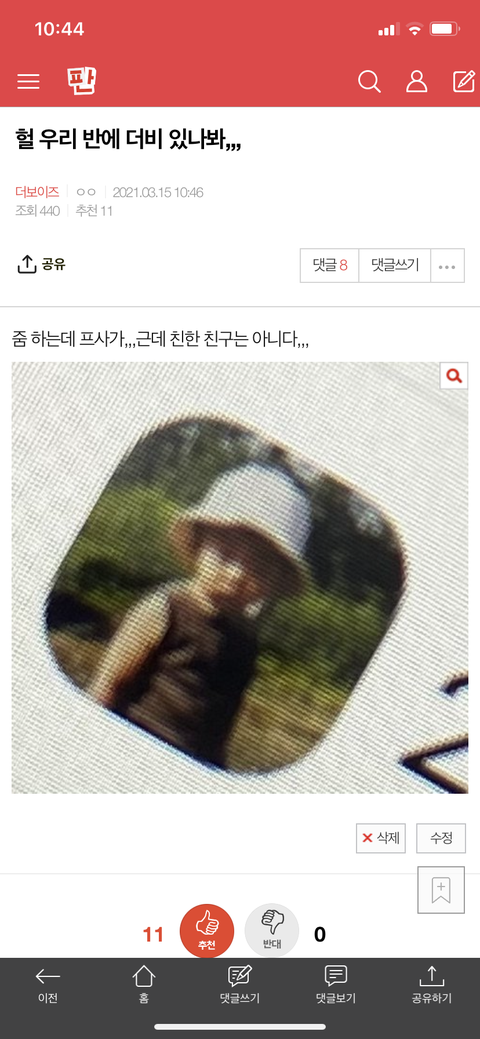 어제 우리 반에 더비 있는 거 같다고 한 쓰니인데