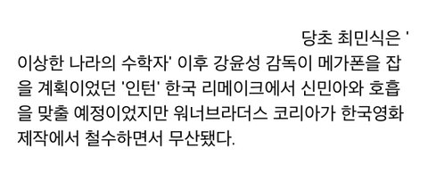 위너브라더스 코리아가 철수하면서 엎어졌다고 함....